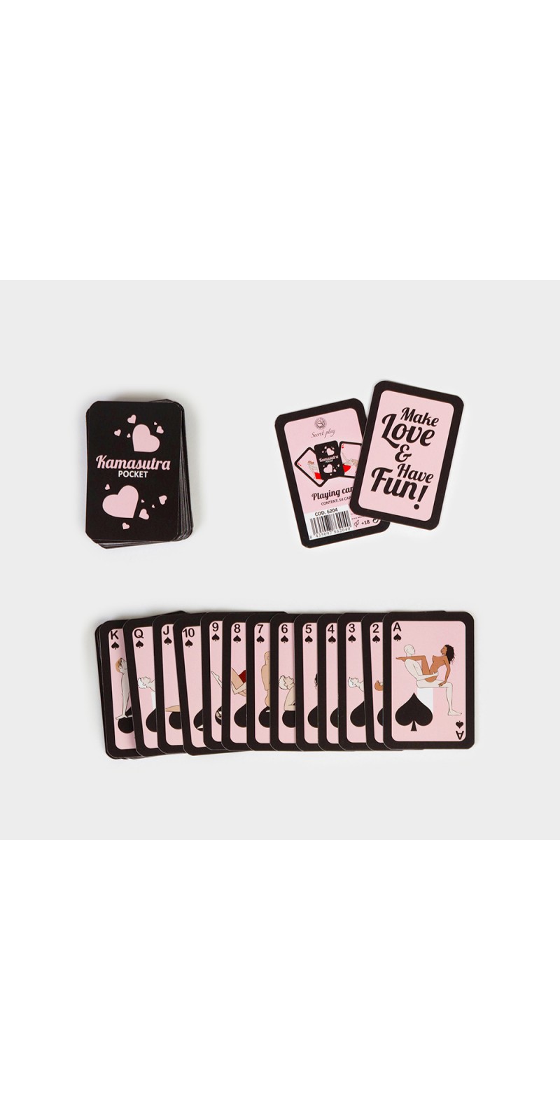 Consiste em um baralho de 54 cartas, cada uma das quais ilustra uma postura diferente e original do Kama Sutra.